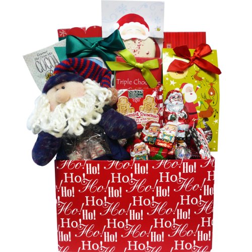 Include a personalized gift message with your order by selecting "GIFT" during checkout. Open the lid to discover an adorable plush Santa with a belly full of Holiday Buttermint Candy, gourmet cookies, candy and other delicious treats for all the good girls and boys to enjoy. After the goodies are gone, the plush Santa decoration and keepsake gift box can be reused as décor for years to come!